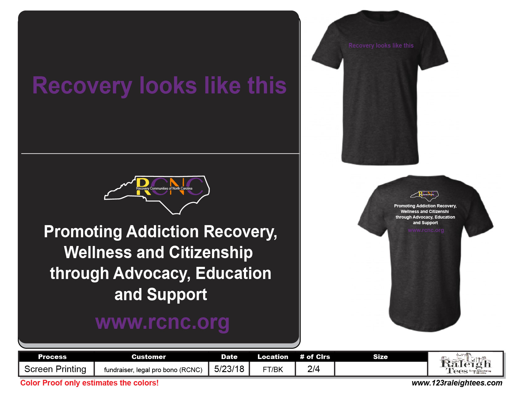 This black t-shirt features the phrase, ‘Recovery looks like this’ on the front and on the back: ‘Promoting Addiction Recovery, Wellness, and Citizenship through Advocacy, Education and Support’ Get your-t-shirt today! Shirts are $10.00 for sizes small to XL. Sizes XXL-5X are $13.00.